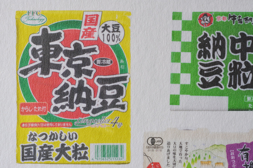 実在する納豆パッケージ『箱』と、ナットウビジュアルまんまの『豆』。