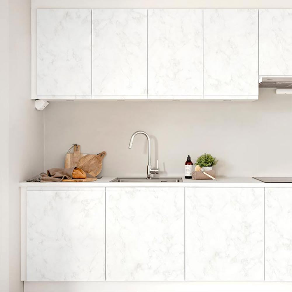 水に強いビニール素材のHatte me!は、水回りのアレンジはもちろん、汚れやすいキッチンの備え付け家具やキャビネットのアレンジにも最適。