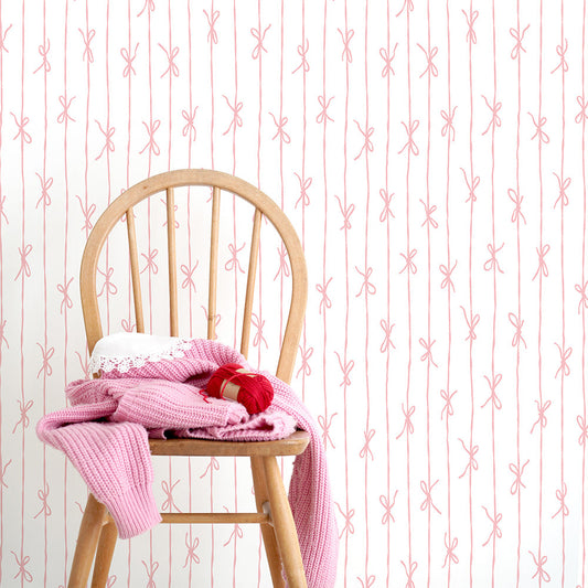 はがせる壁紙 のりなしタイプ What's poppin? リボンストライプ ナチュラル (49cm×3mサイズ) ローズ