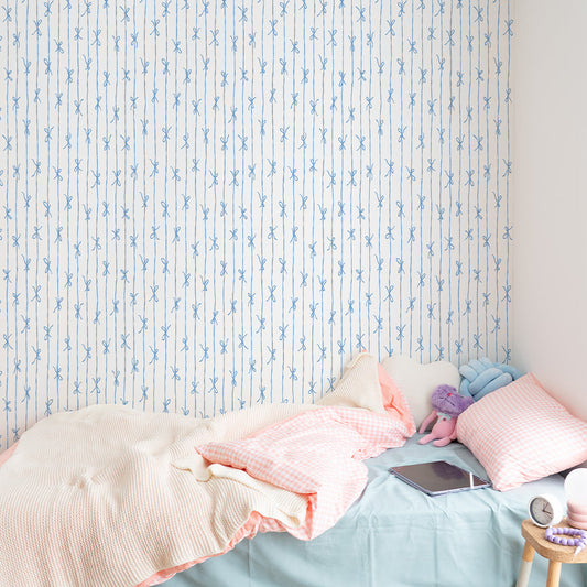はがせる壁紙 のりなしタイプ What's poppin? リボンストライプ ナチュラル (49cm×3mサイズ) サックス