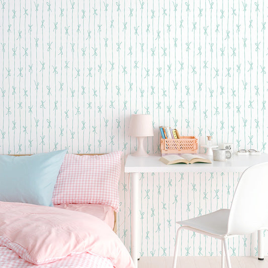 はがせる壁紙 のりなしタイプ What's poppin? リボンストライプ ナチュラル (49cm×3mサイズ) ミント