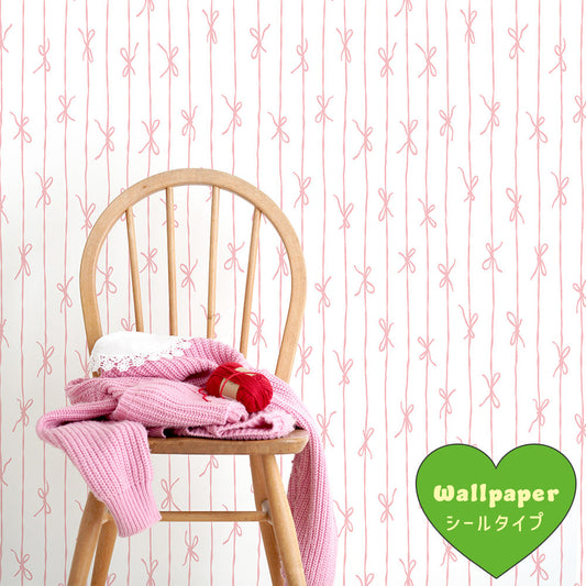 はがせる壁紙 のりなしタイプ What's poppin? リボンストライプ ナチュラル (49cm×3mサイズ) チェリー