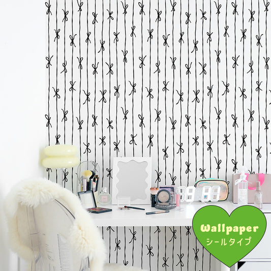 はがせる壁紙 のりなしタイプ What's poppin? リボンストライプ ナチュラル (49cm×3mサイズ) ノワール