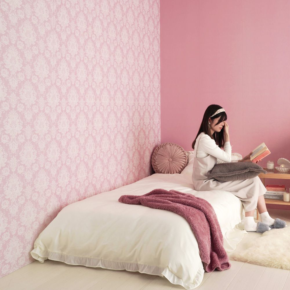 はがせる壁紙 シールタイプ Mon Sucrier ダマスク・レース マダムポンパドール (49cm×2.5mサイズ) TMS-MP02 ピンクトルマリン