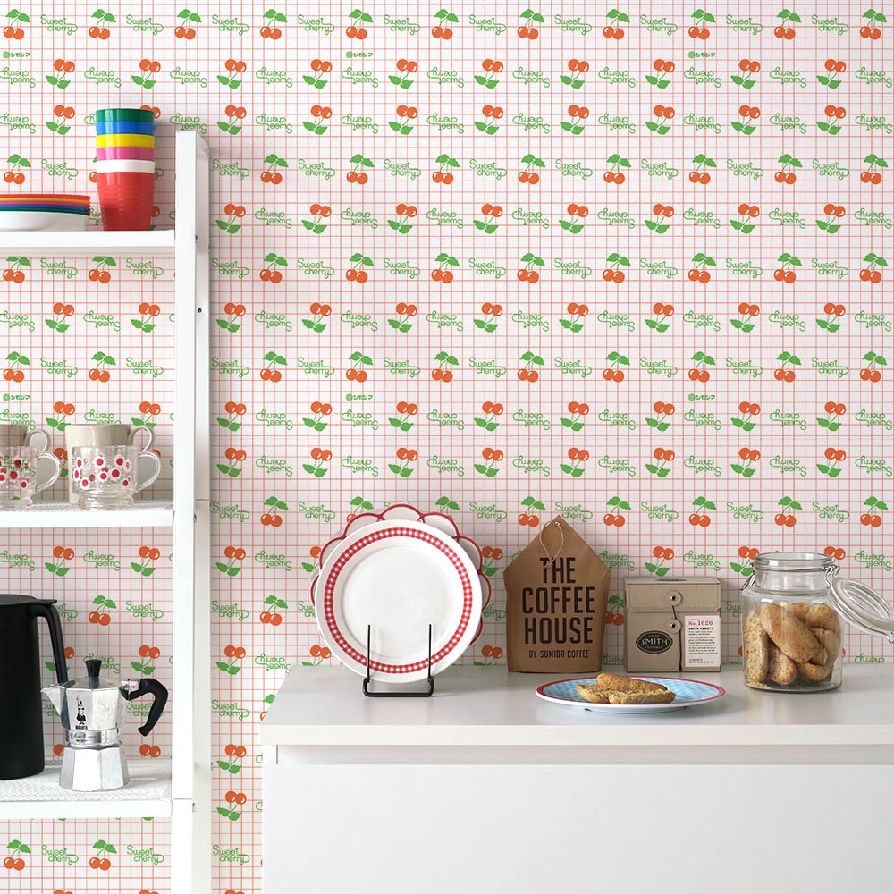 貼ってはがせる シール壁紙 「Hatte me! (ハッテミー)」 リメイクシート すっきりタイル/ポップ (65cm×2.6mサイズ) PSQT-04 / レッド目地