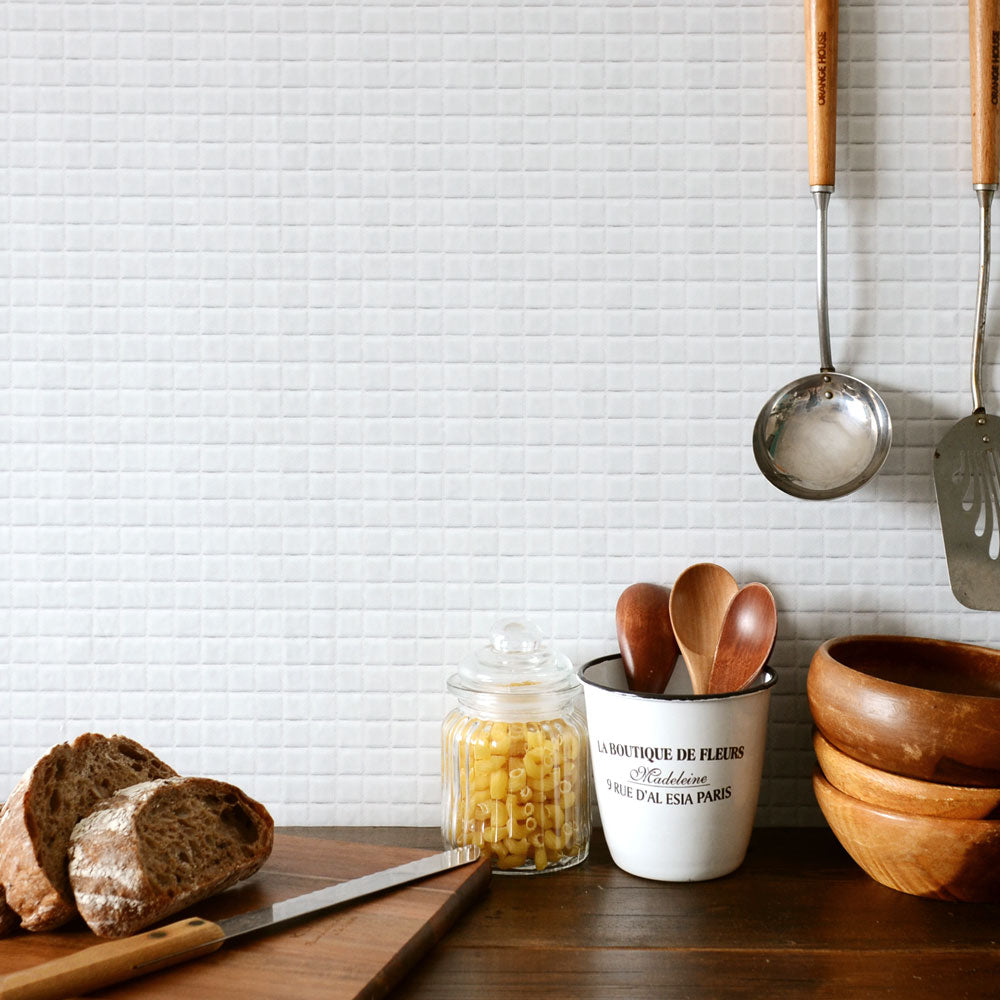 貼ってはがせる シール壁紙 「Hatte me! (ハッテミー)」 リメイクシート モザイクタイル柄 (65cm×1mサイズ) MOSA-01 ホワイト