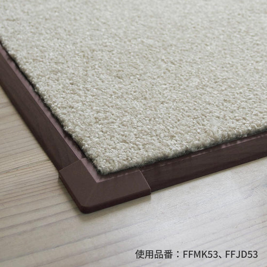 タイルカーペットを部分敷きした際、「見切り材」と「コーナー材」を外周部に貼り付けることで、端部のほつれやダメージを防いだり、フローリング面との段差をなだらかにしたりできます。