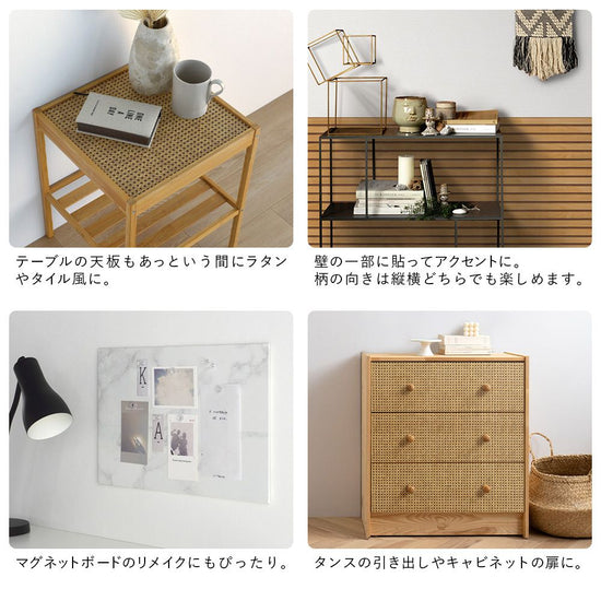 家具や箱などに貼るだけであっという間にラタン家具に変身!