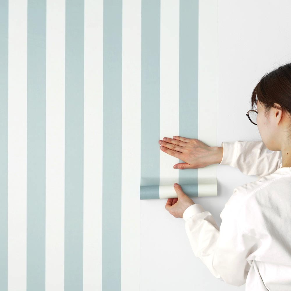 マステ感覚で貼る壁紙 EASY WALL TAPE ストライプ/くすみブルー EWT36 イージーウォールテープ (幅23cm×6m)
