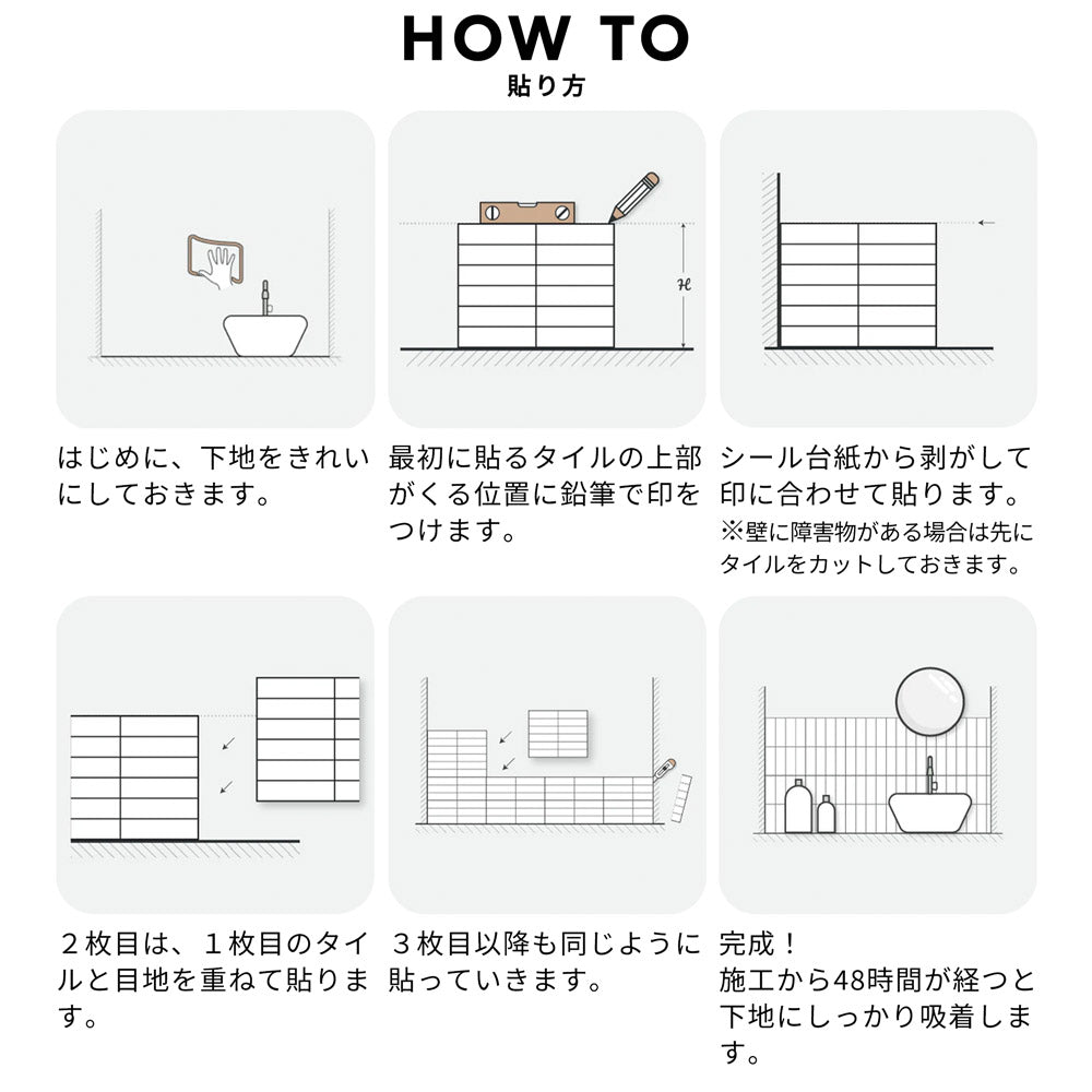 自然な色ムラが魅力の長方形タイルデザイン。タテヨコどちらに貼るのもおすすめです。