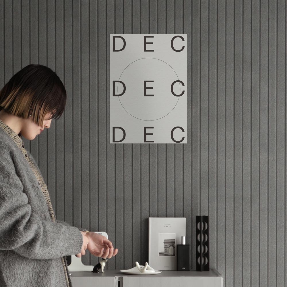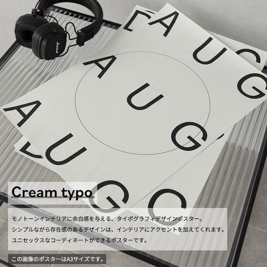 モノトーンインテリアに余白感を与える、タイポグラフィデザインポスター。