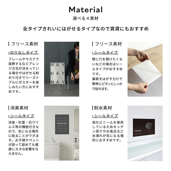 | 素材 | 表:漆喰塗料付きPETフィルム 裏:アクリル系粘着剤 |