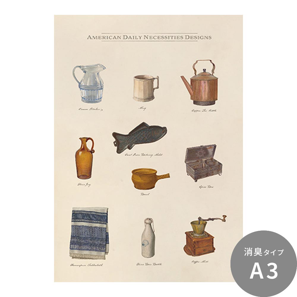 貼ってはがせる 消臭 アートポスター A3サイズ レトロトレ American daily necessities designs SRT-AP19
