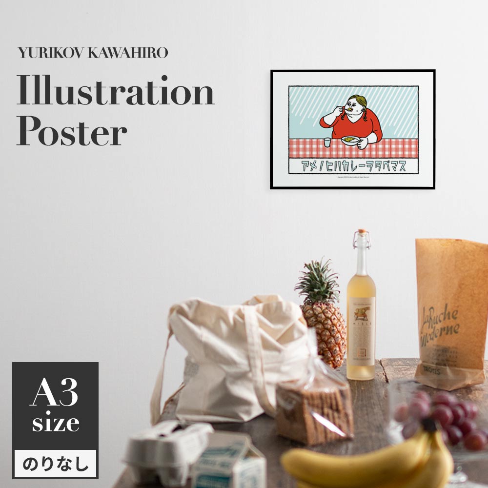 アートポスター のりなし A3サイズ WALLTZ ウォルツ ユリコフカワヒロ アメノヒハカレーヲタベマス NWZ-YKIP04