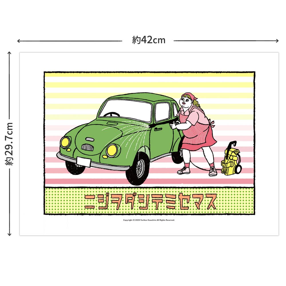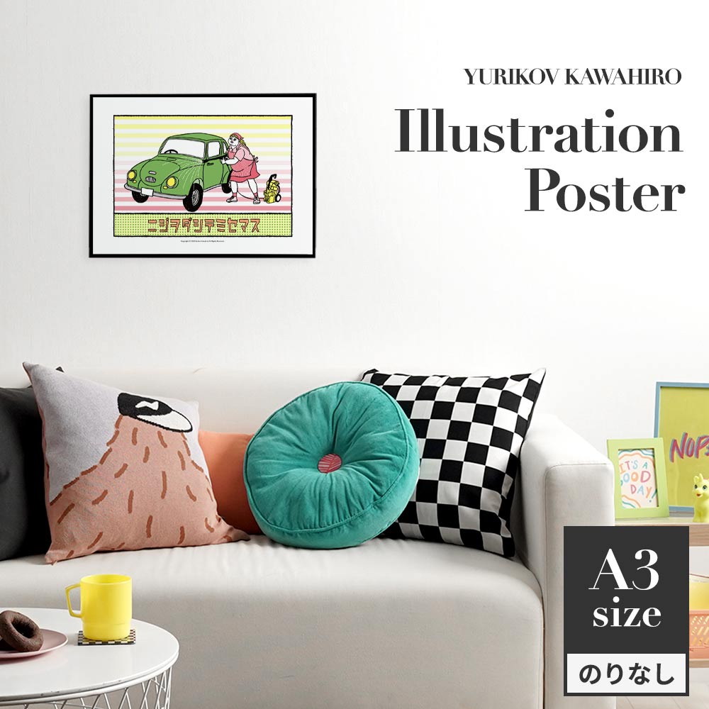 日常の中の見慣れた光景をコミカルな視点で描くユリコフカワヒロのアートポスター。