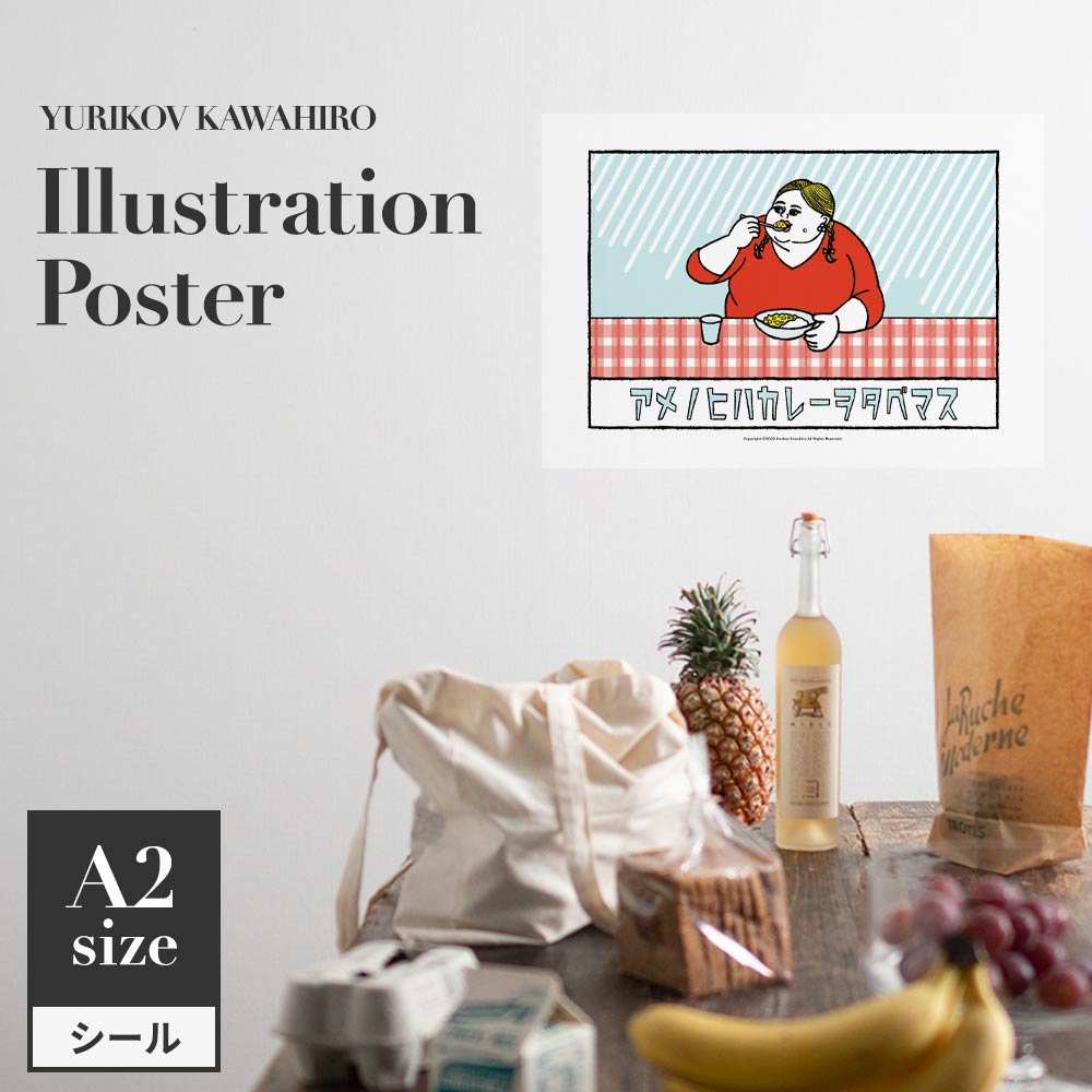 貼ってはがせる アートポスター A2サイズ ウォールステッカー WALLTZ ウォルツ ユリコフカワヒロ アメノヒハカレーヲタベマス TWZ-YKIP04