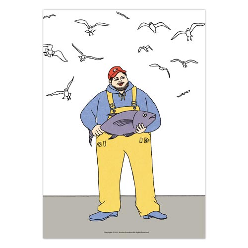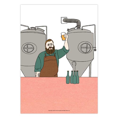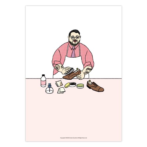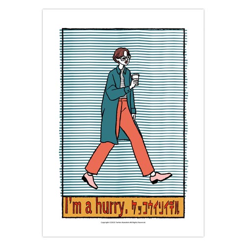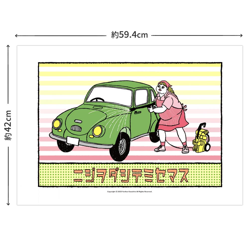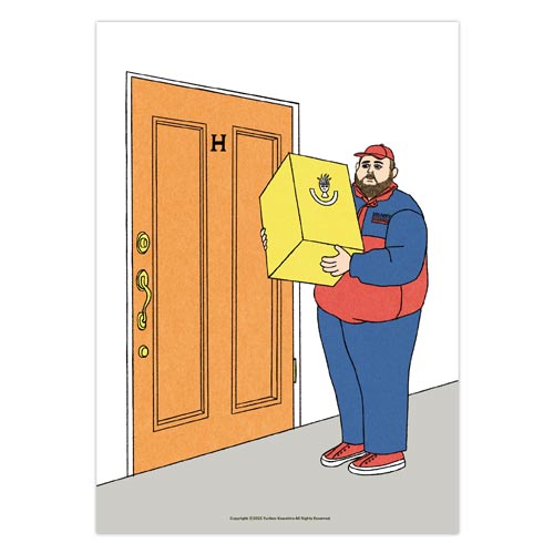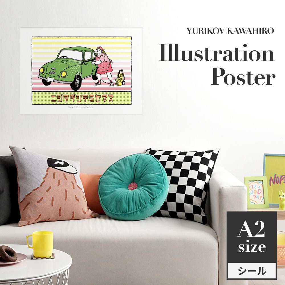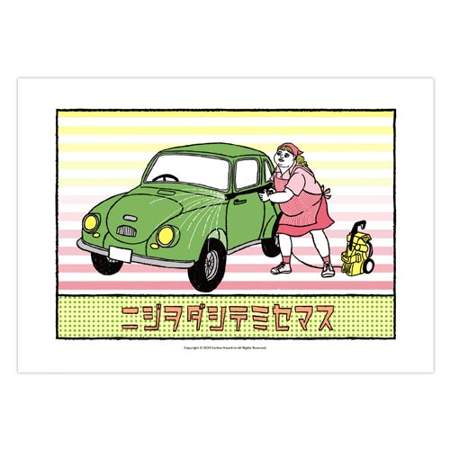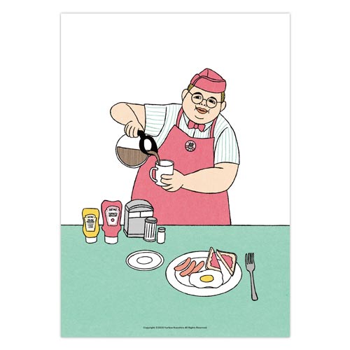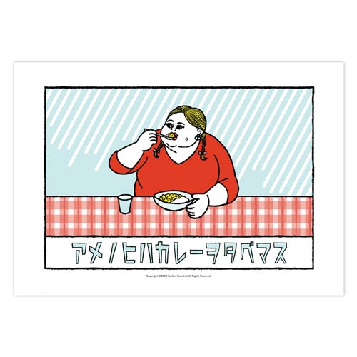 日常の中の見慣れた光景をコミカルな視点で描くユリコフカワヒロのアートポスター。