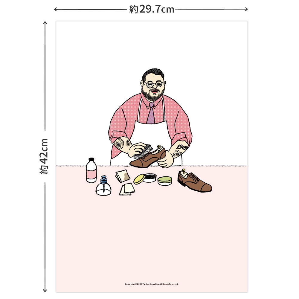 貼ってはがせる アートポスター A3サイズ ウォールステッカー WALLTZ ウォルツ ユリコフカワヒロ WORKERS shoeshiner TWZ-YKIP11