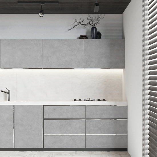 5つの濃さから選べるシンプルなコンクリート柄。キッチンキャビネットや家具に貼ってモダンな雰囲気にできます。