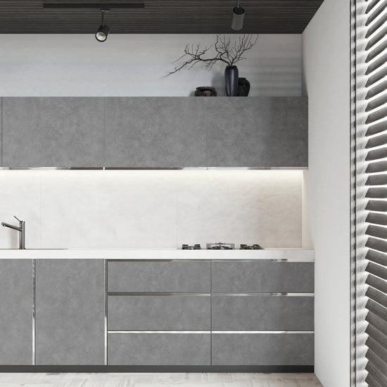 5つの濃さから選べるシンプルなコンクリート柄。キッチンキャビネットや家具に貼ってモダンな雰囲気にできます。