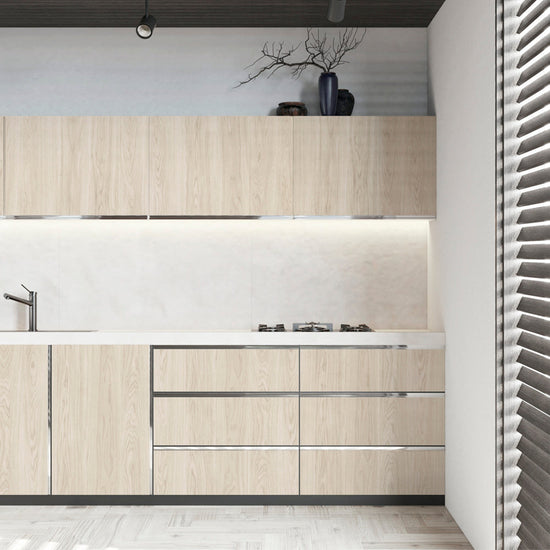 キッチンキャビネットやドアの色が家具の木目の色となんだか合わない。そんなときのおすすめの木目デザインのリメイクシート。