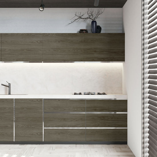 キッチンキャビネットやドアの色が家具の木目の色となんだか合わない。そんなときのおすすめの木目デザインのリメイクシート。