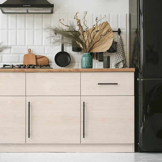 キッチンキャビネットやドアの色が家具の木目の色となんだか合わない。そんなときのおすすめの木目デザインのリメイクシート。