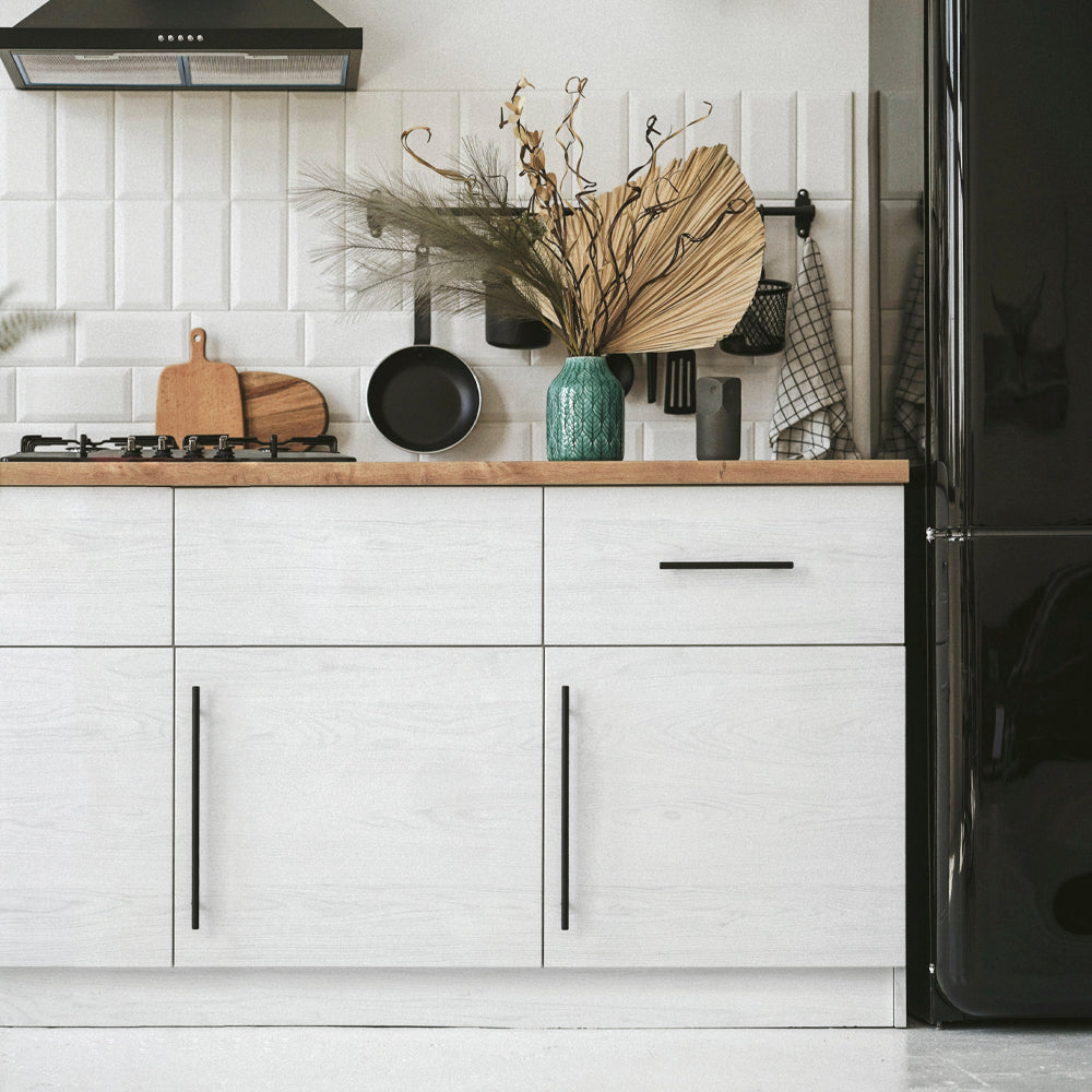 キッチンキャビネットやドアの色が家具の木目の色となんだか合わない。そんなときのおすすめの木目デザインのリメイクシート。