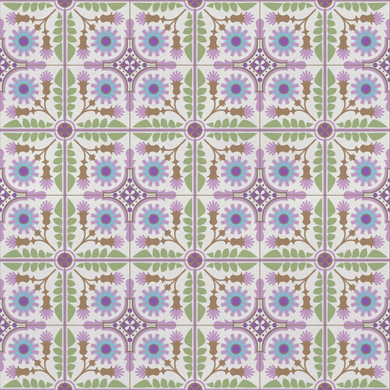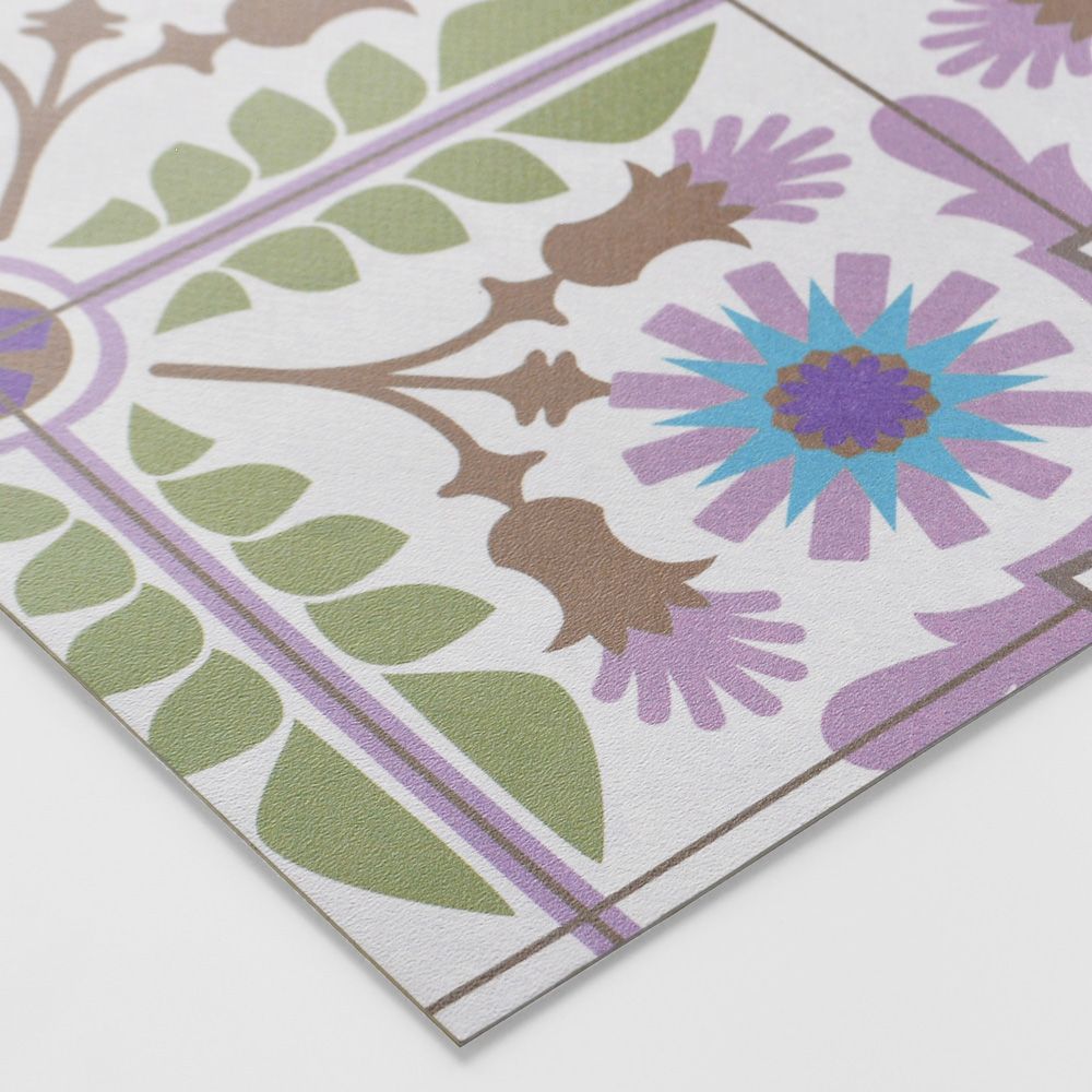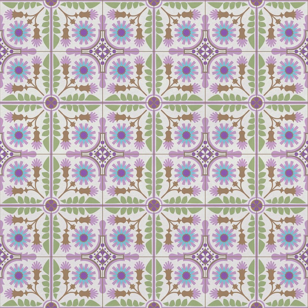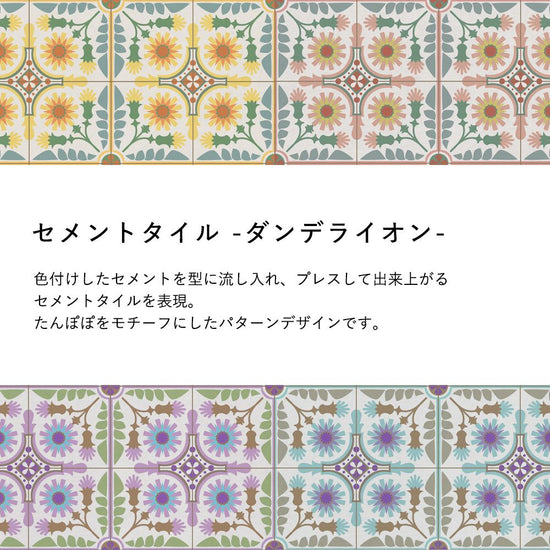 貼ってはがせる 床リメイクシート「Hatte me Floor (ハッテミーフロア)」セメントタイル -ダンデライオン- (65cm×3mサイズ) パープル