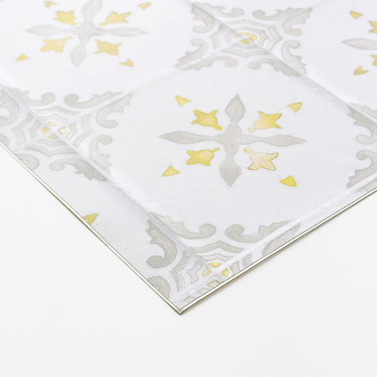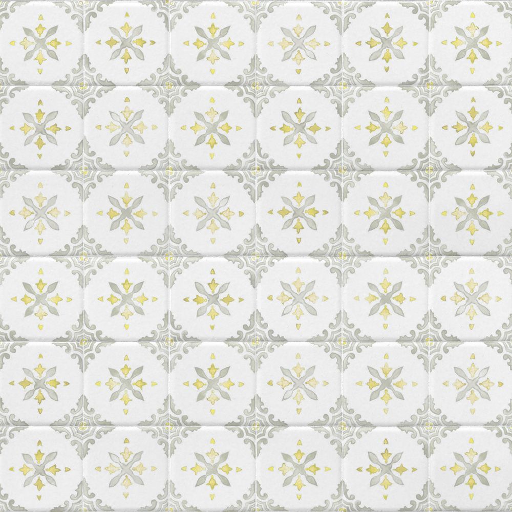 並べると図柄ができるコーナーデザインが特徴の絵付けタイル。