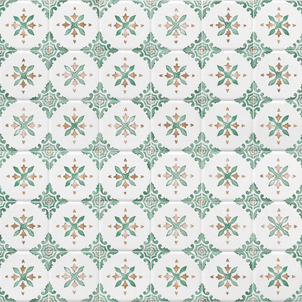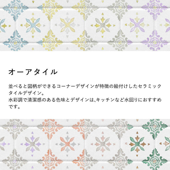 並べると図柄ができるコーナーデザインが特徴の絵付けタイル。