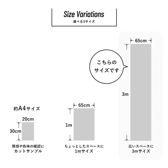 細長い廊下や、広いスペースに貼るのにちょうどいい65cm×3mサイズ。