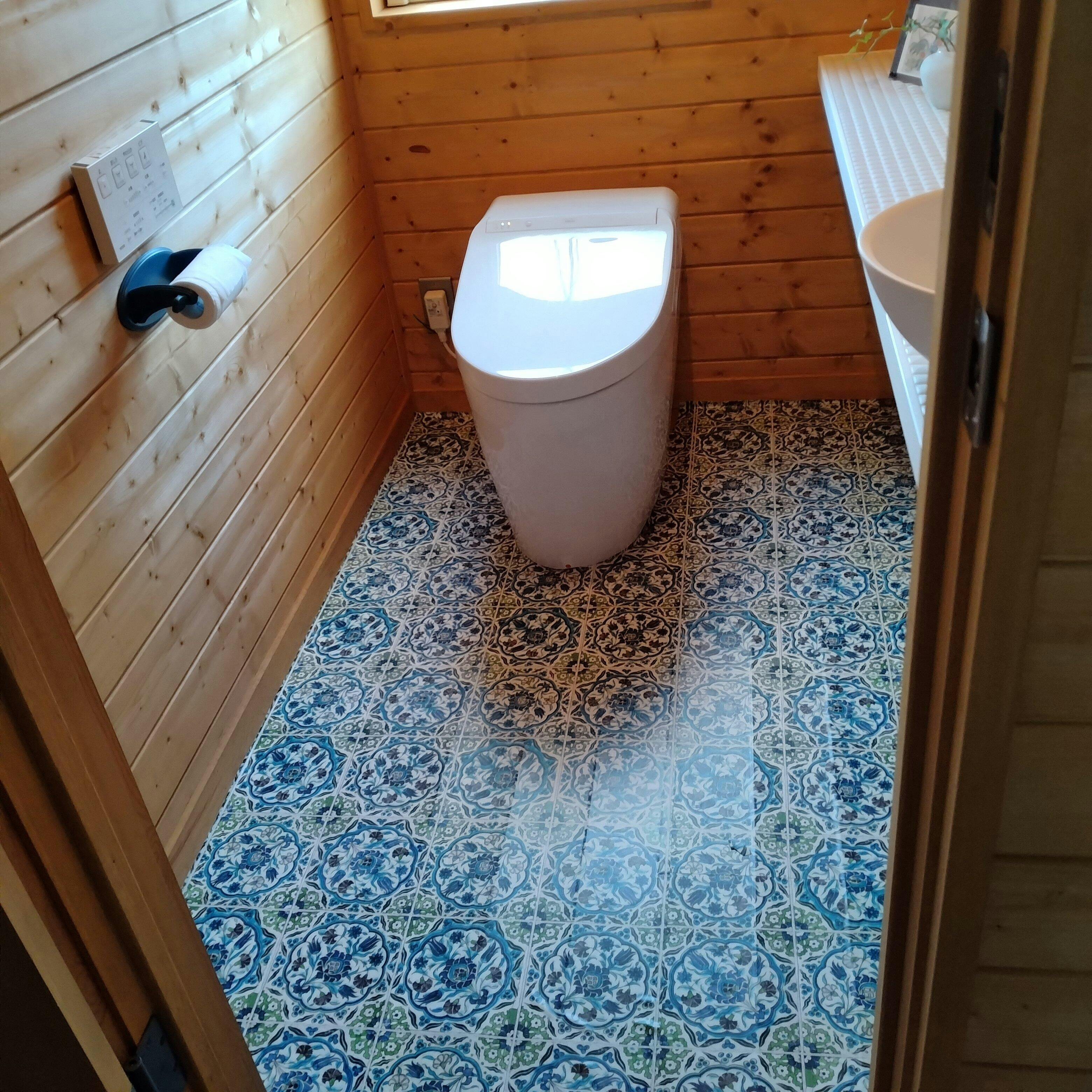 水に強いビニール素材で、キッチン・洗面所・トイレはもちろん、土足OKなので、玄関にも使えます。