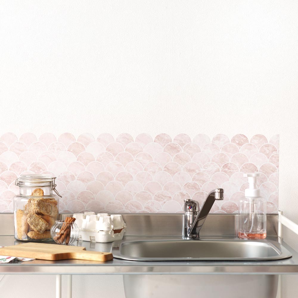 水はね防止シート Mon Sucrier マーメイドタイル ローズコーラル MBS-MS01(25cm×1.3m)貼ってはがせる Hatte me! (ハッテミー) 横長サイズ