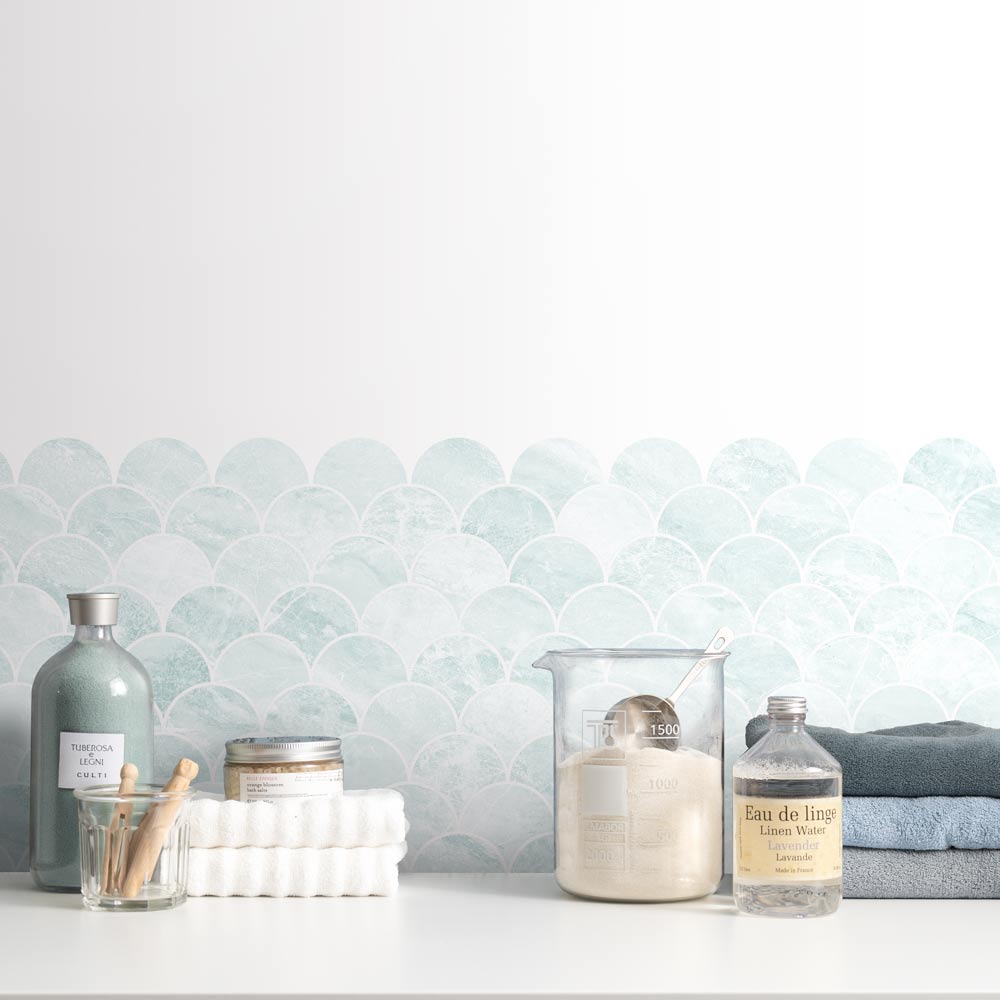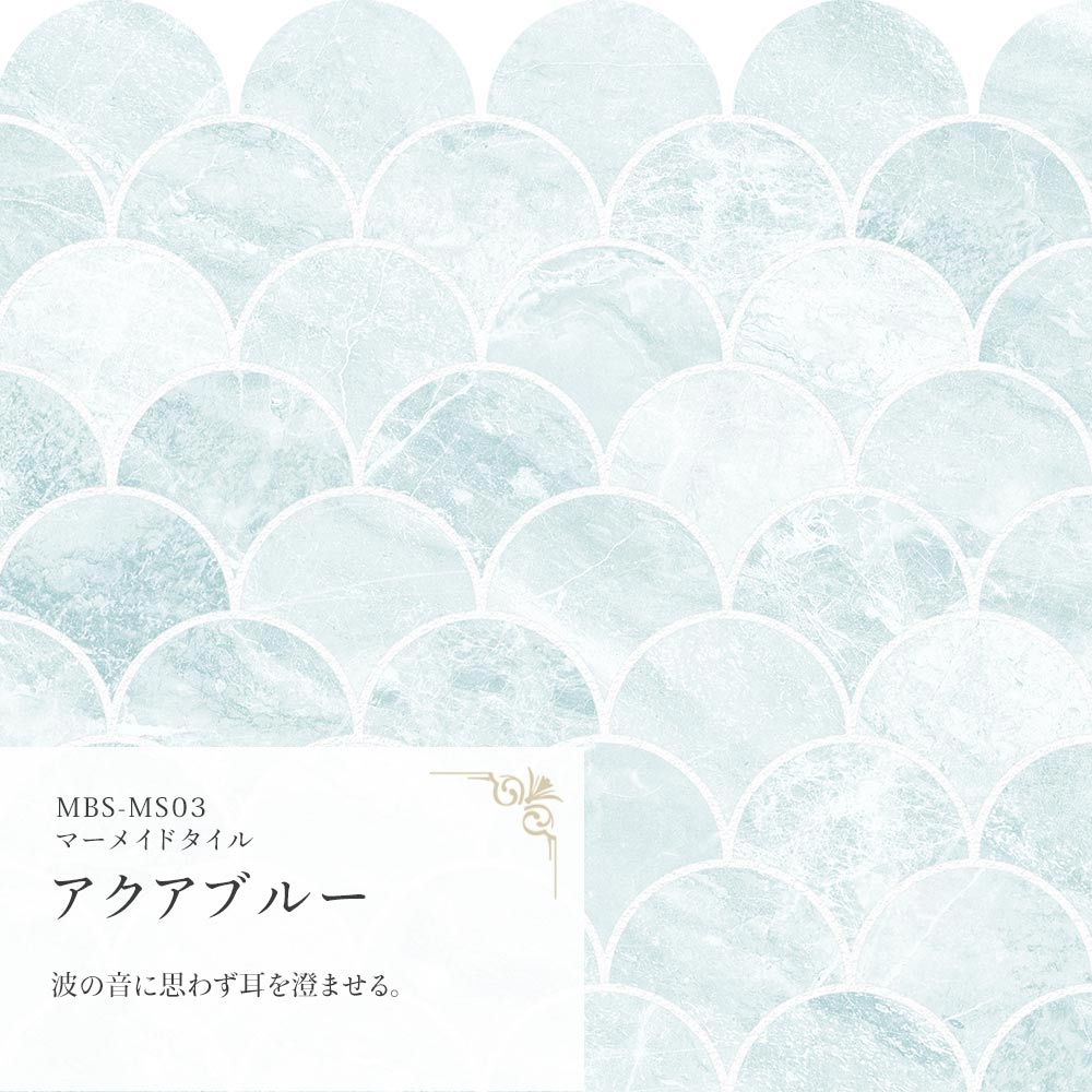 水はね防止シート Mon Sucrier マーメイドタイル アクアブルー MBS-MS03(25cm×1.3m)貼ってはがせる Hatte me! (ハッテミー) 横長サイズ