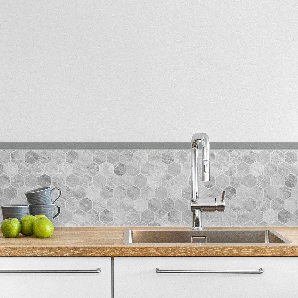 水はね防止シート ヘキサマーブル MBS-NA07(25cm×1.3m)貼ってはがせる Hatte me! (ハッテミー) 横長サイズ