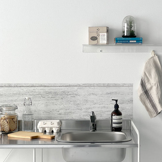 水はね防止シート トラバーチン グレー MBS-NA10(25cm×1.3m)貼ってはがせる Hatte me! (ハッテミー) 横長サイズ