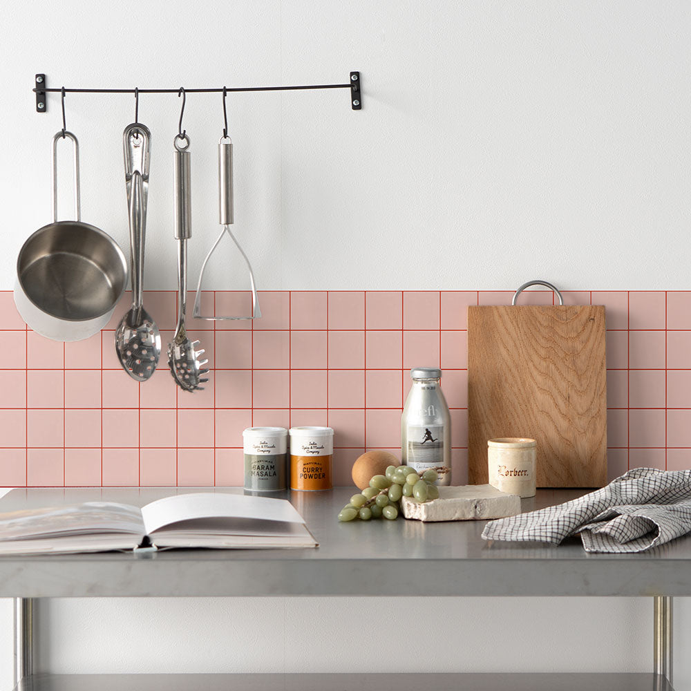 水はね防止シート カラータイル ピンク×レッド MBS-PO01(25cm×1.3m)貼ってはがせる Hatte me! (ハッテミー) 横長サイズ