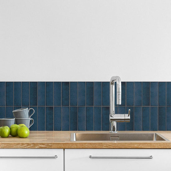 水はね防止シート レトロタイル アルボル ブルー MBS-TL06(25cm×1.3m)貼ってはがせる Hatte me! (ハッテミー) 横長サイズ