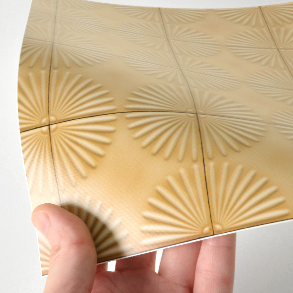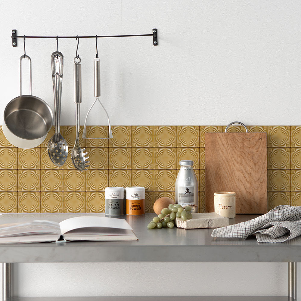 水はね防止シート フラワータイル ハニーイエロー MBS-TL07(25cm×1.3m)貼ってはがせる Hatte me! (ハッテミー) 横長サイズ