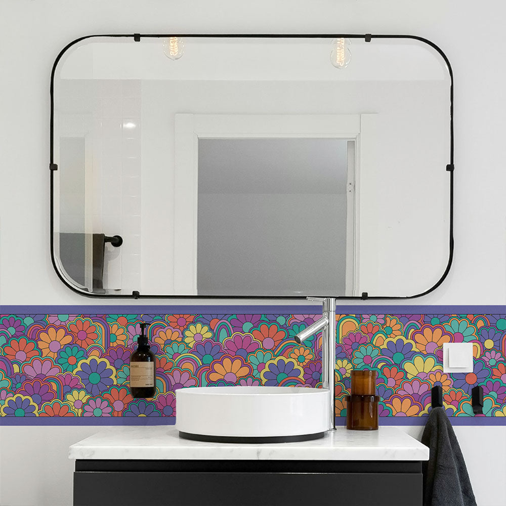 水はね防止シート What's poppin? フラワーグルーヴ パープル MBS-WP04(25cm×1.3m)貼ってはがせる Hatte me! (ハッテミー) 横長サイズ