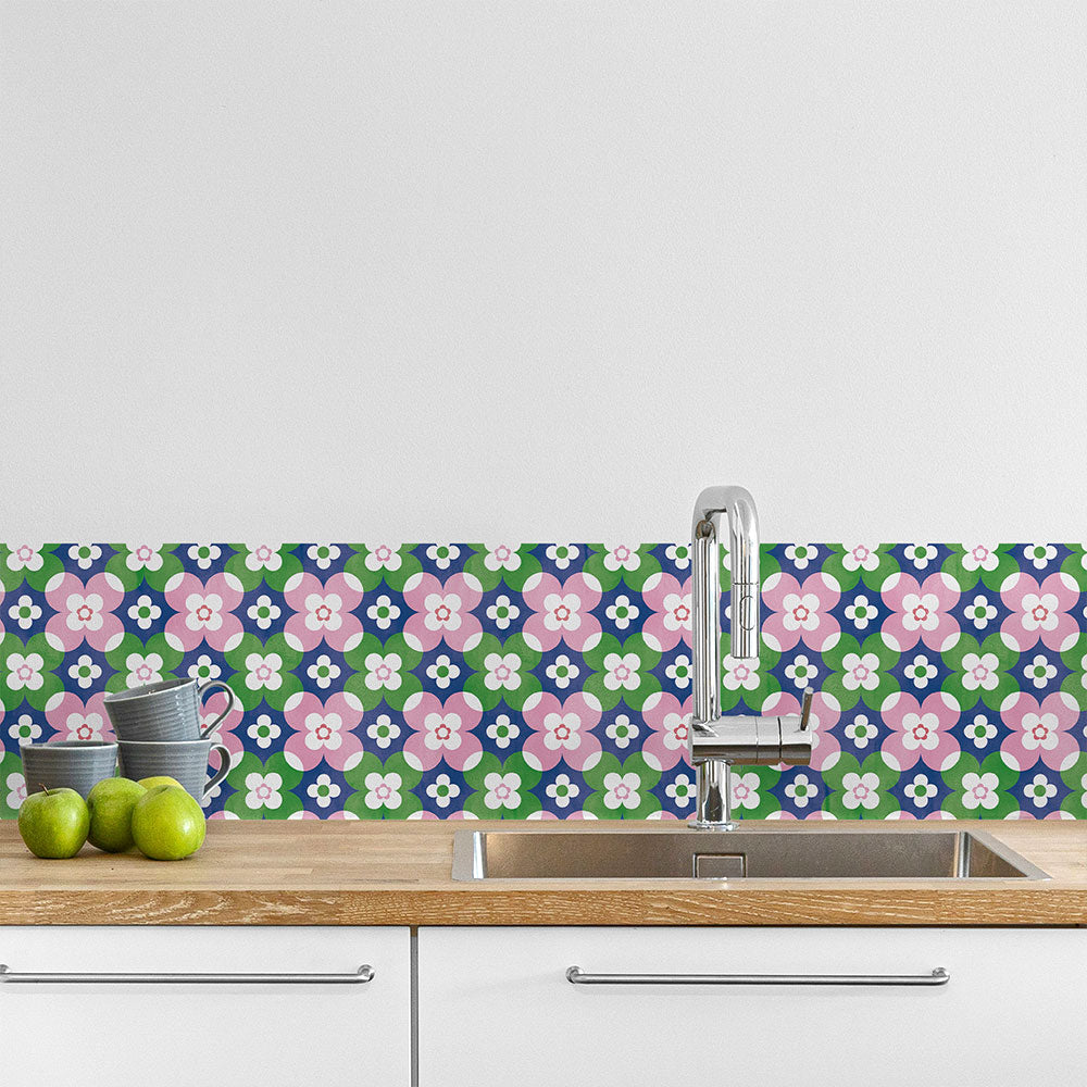水はね防止シート What's poppin? オリエンタルフラワー MBS-WP06(25cm×1.3m)貼ってはがせる Hatte me! (ハッテミー) 横長サイズ