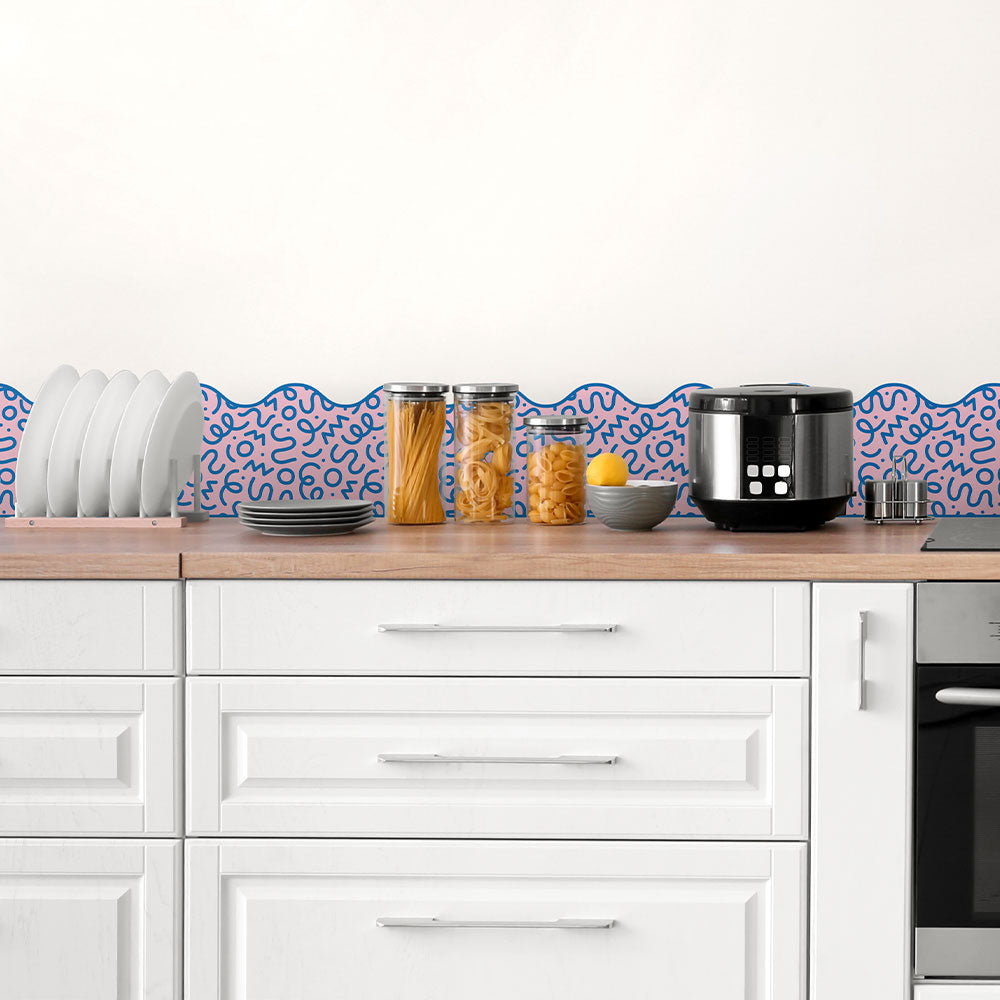 水はね防止シート What's poppin? WIGGLE WAVE ブルー×ピンク MBS-WP08(25cm×1.3m)貼ってはがせる Hatte me! (ハッテミー) 横長サイズ