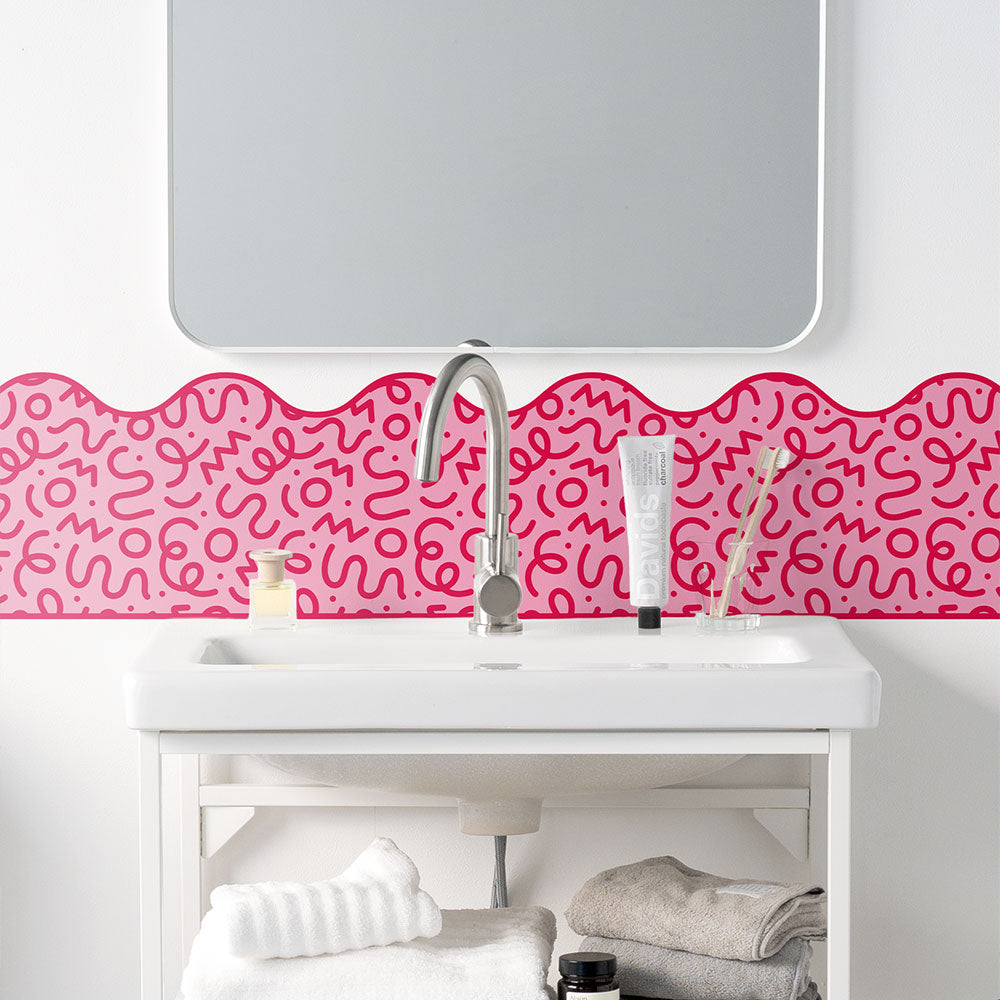 水はね防止シート What's poppin? WIGGLE WAVE チェリー×ピンク MBS-WP10(25cm×1.3m)貼ってはがせる Hatte me! (ハッテミー) 横長サイズ