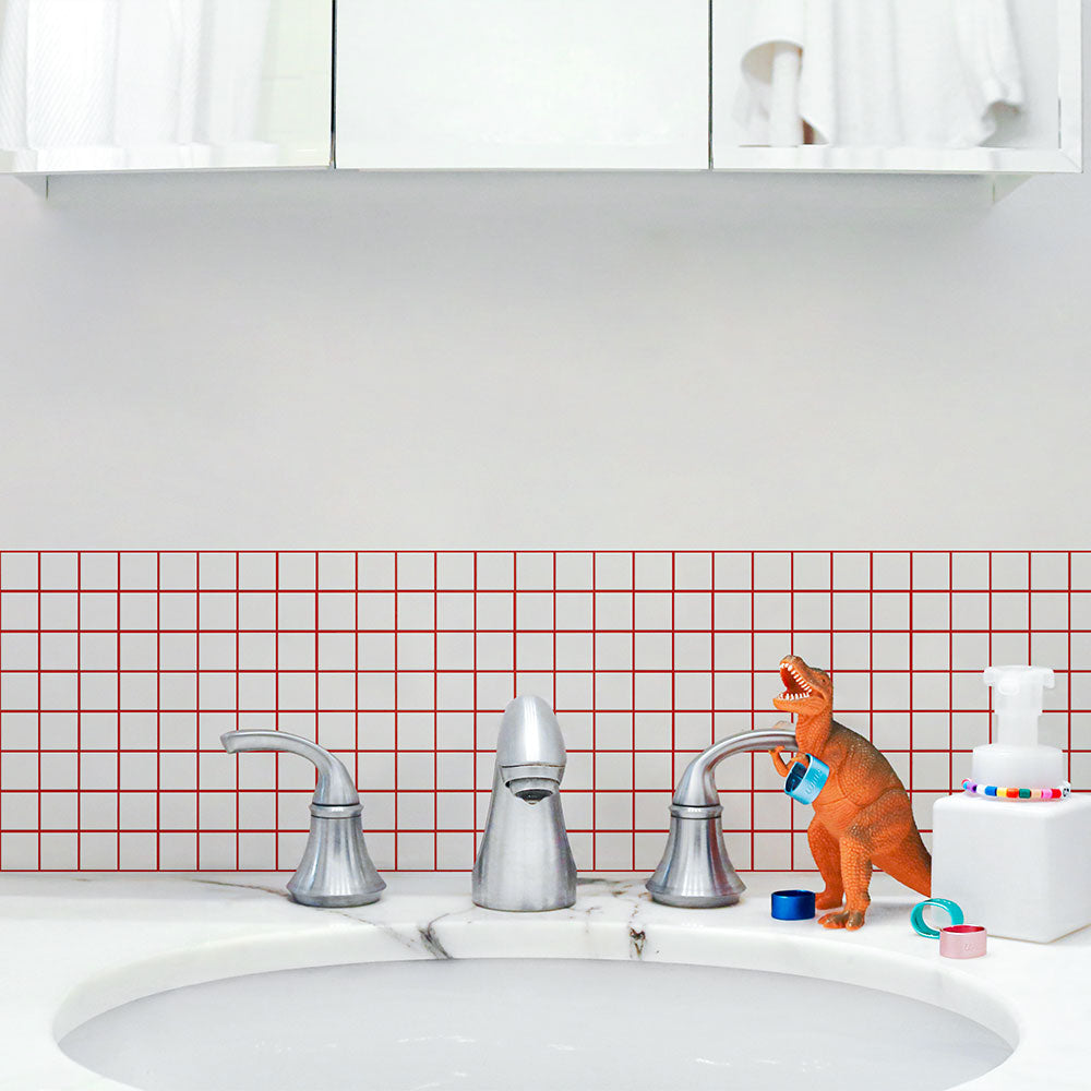 水はね防止シート What's poppin? ミニスクエアタイル レッド MBS-WP17(25cm×1.3m)貼ってはがせる Hatte me! (ハッテミー) 横長サイズ
