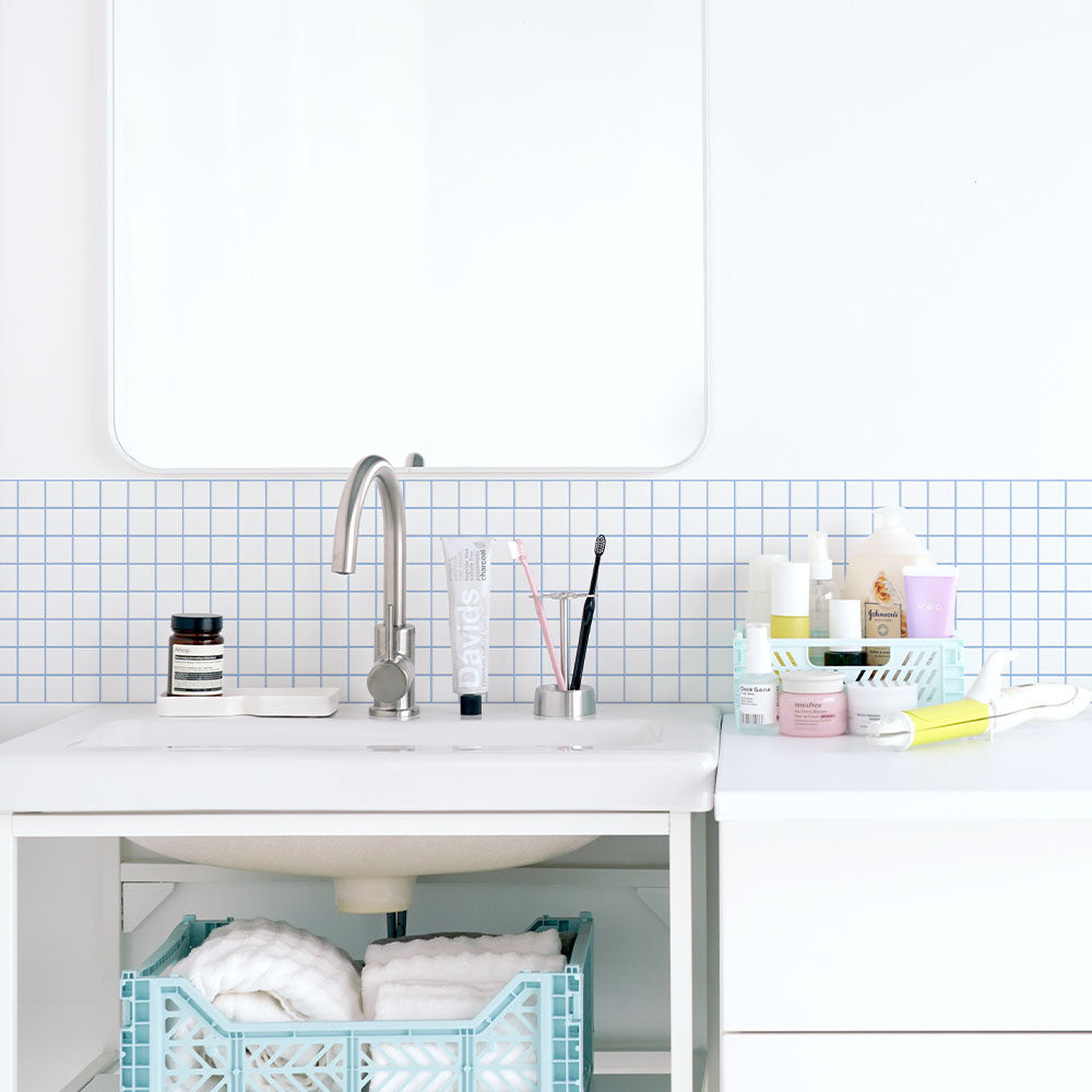 水はね防止シート What's poppin? ミニスクエアタイル ライトブルー MBS-WP20(25cm×1.3m)貼ってはがせる Hatte me! (ハッテミー) 横長サイズ