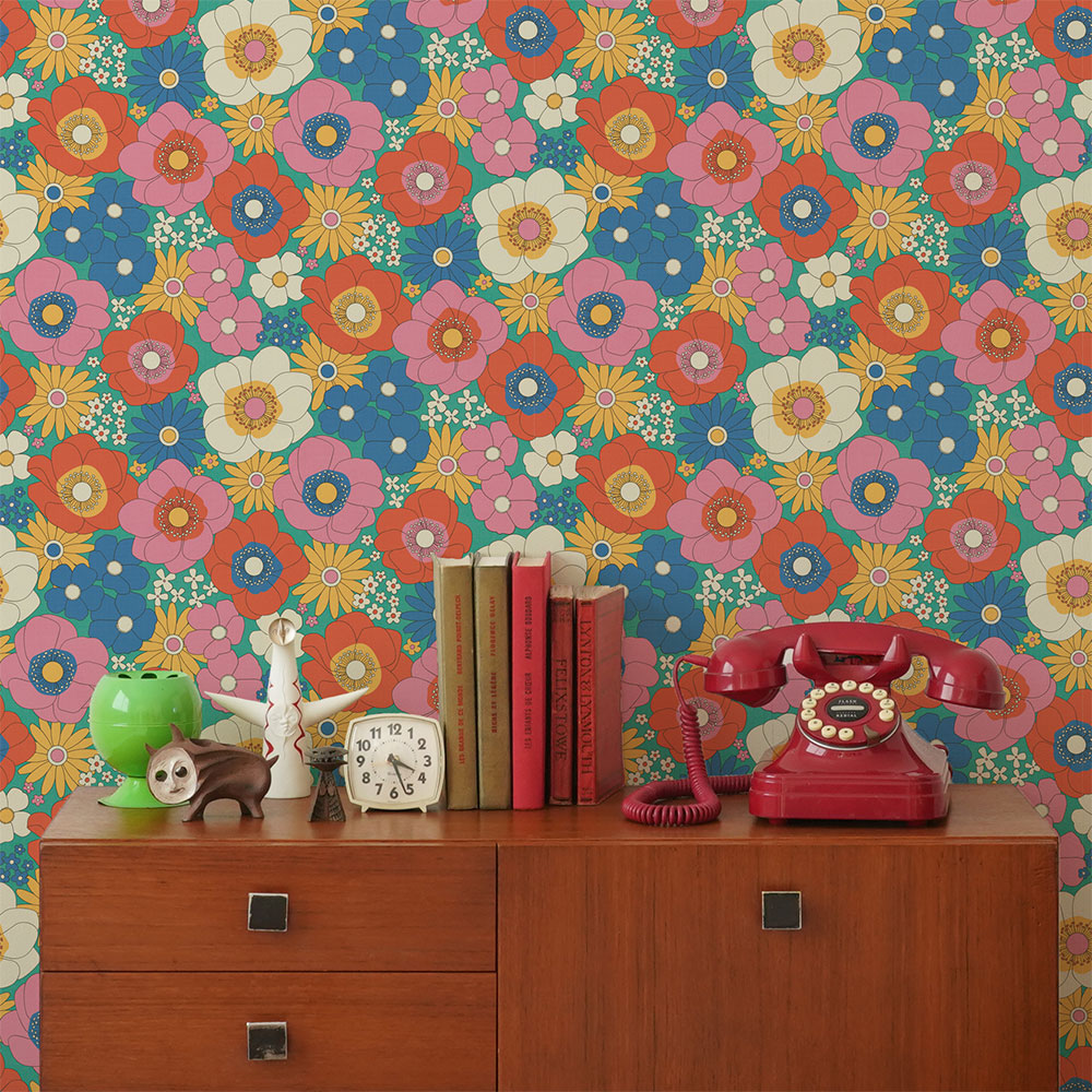 70年代のレトロポップな花柄をイメージしたデザイン。