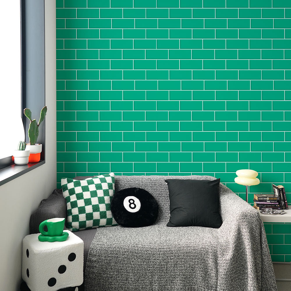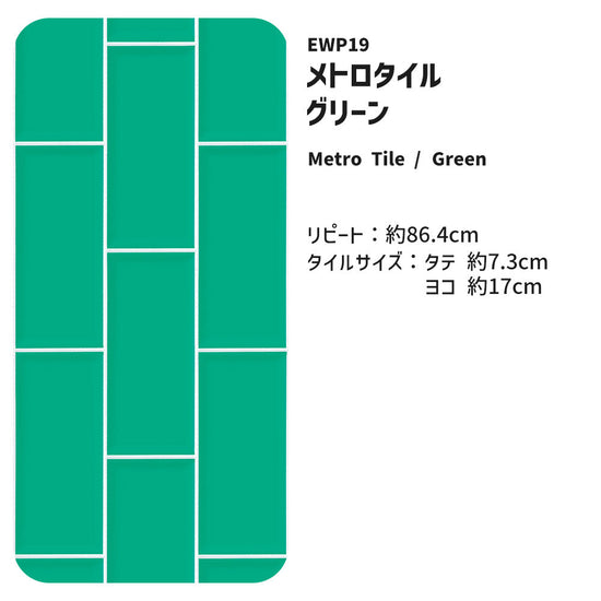 【3本セット】EASY WALL TAPE メトロタイル/グリーン EWP19 What’s poppin? イージーウォールテープ (幅23cm×6m)