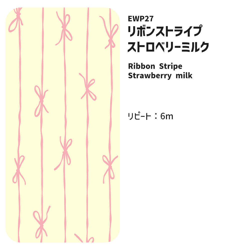 【3本セット】EASY WALL TAPE リボンストライプ/ストロベリーミルク EWP27 What’s poppin? イージーウォールテープ (幅23cm×6m)