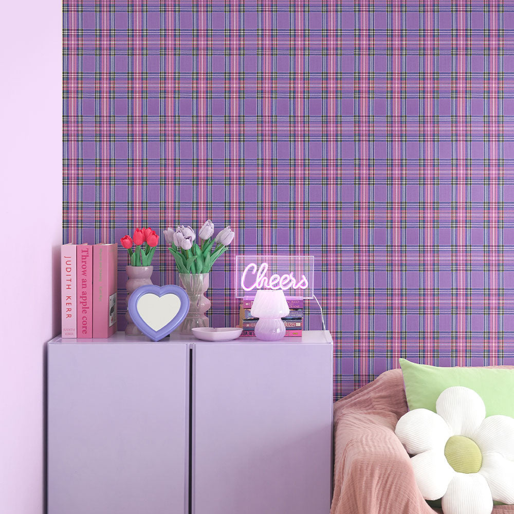 マステ感覚で貼る壁紙 EASY WALL TAPE スクールチェック/パープル EWP30 What’s poppin? イージーウォールテープ (幅23cm×6m)